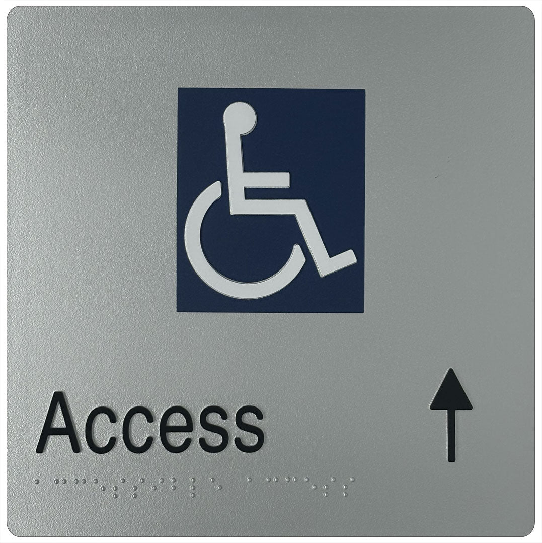 In accordance with the Building Code of Australia, where a pedestrian entrance is not accessible, braille & tactile directional signage must be provided to direct a person to the location of the nearest accessible pedestrian entrance.