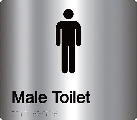 Male Toilet braille and tactile sign in brushed anodised aluminium.
